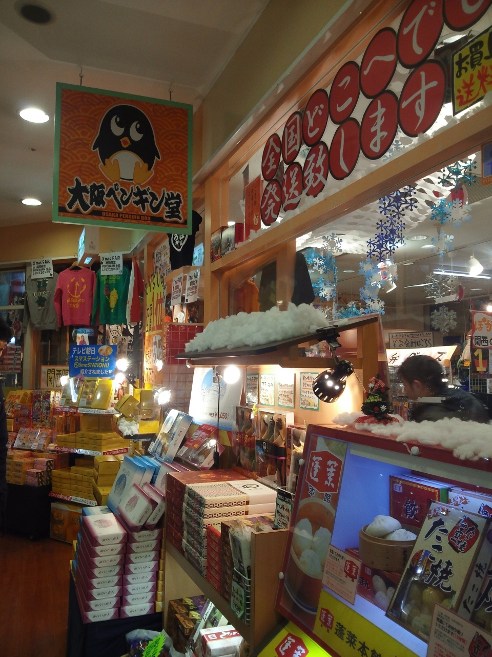 大阪ペンギン堂は、大阪ならでわの、おみやげ・バラエティ雑貨のショップです。関西の「ホンマにうまいモン、おもろいモン」が売っています。お菓子、食品やら、大阪らしいおもしろTシャツなど、ココでしか買えないものがぎょーさんありまました。