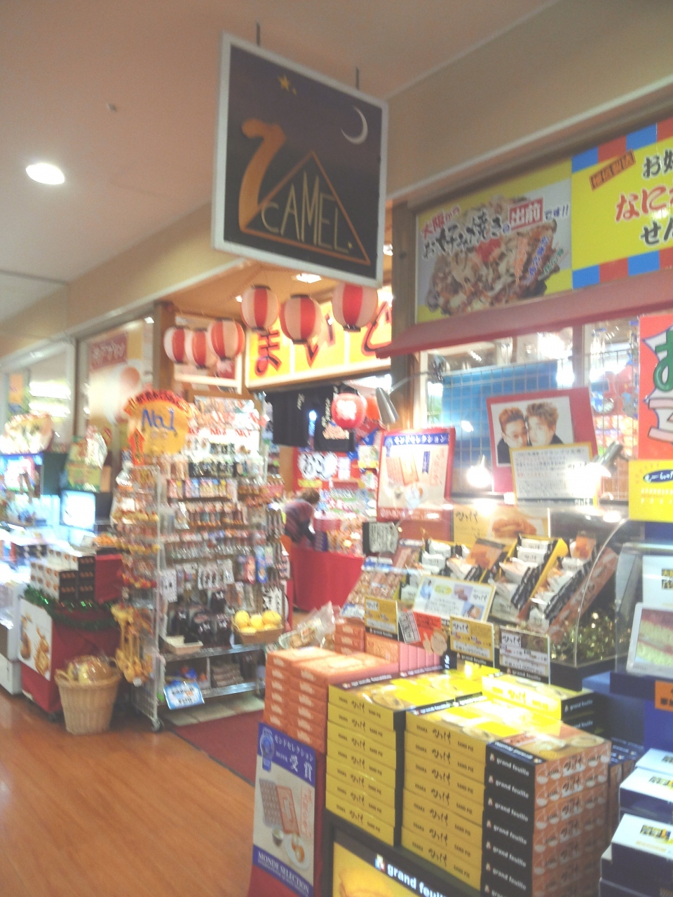 キャメルは、おみやげ・バラエティ雑貨のショップです。マーケットプレース2階で、一番広いお土産屋だそうです。ショップ無いでは、大阪を中心に関西限定のお菓子、キャラクターグッズを200種類以上品揃えいます。「タコ焼きまんじゅう!大阪へ行って来たの?」など色々なお土産が買えます。