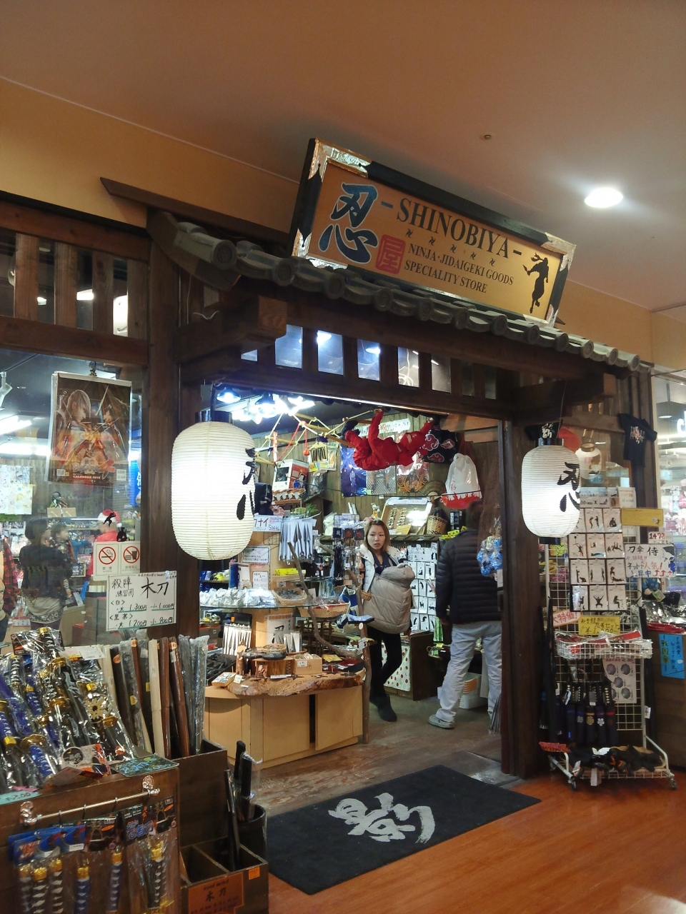 忍者グッズのショップの忍屋です。忍者・時代劇グッズ+忍者体験アトラクションが楽しめるそうです。忍者・時代劇関係のグッズからキャラクターグッズまでそろっているそうです。なんと「忍者手裏剣道場」もあり手裏剣でニンニんできます。