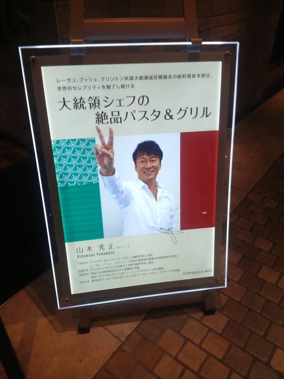 Donnagolosiは、25年間に渡りアメリカで活躍してきた山本シェフならではの「美味しい料理をダイナミックなアメリカンサイズで楽しむイタリアンレストラン」です。パスタは一般的な量の1.5倍がスタンダード、そして仔羊のグリルは骨付ラックをそのままに豪快に盛り付けるのが特徴だそうです。
