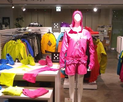 ホグロフスは、北欧スウェーデン発祥のアウトドアブランドです。世界有数の登山家、バックカントリースキーヤー、トレイルランナーなどに信頼され北欧の洗練されたデザイン、高品質素材を使った高機能な商品を展開しているそうです。ショップ内には、ウエア、ザック、シューズ、アクセサリー等がありました。