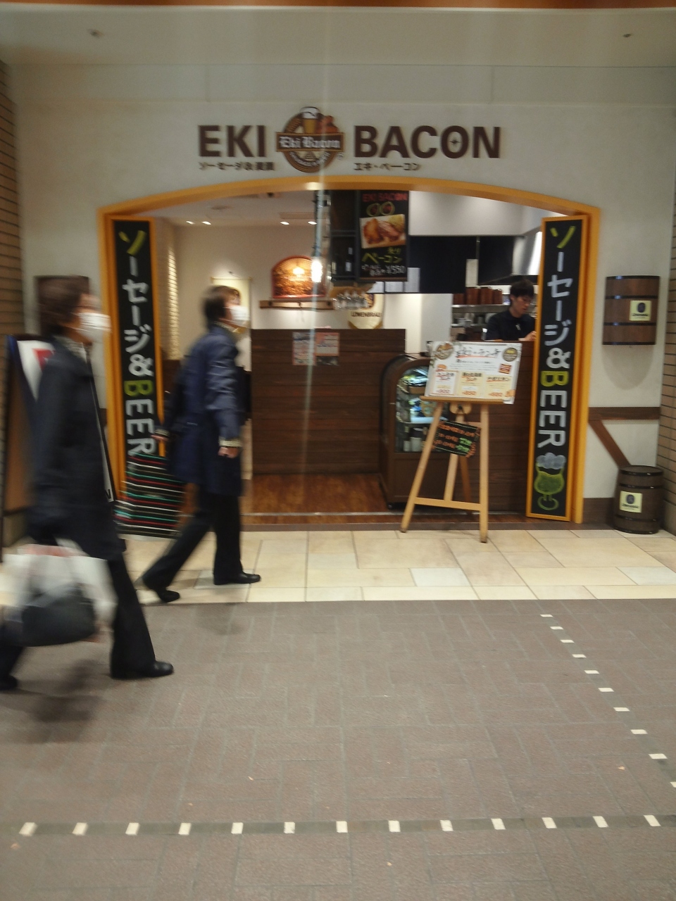 エキベーコンは、ソーセージとビ−ルのビアホールです。粗挽き 焼ソーセージ ノンスモーク、 粗挽きフランク スモーク 、 ハーブソーセージ ノンスモーク 、 チョリソー スモークなどのソーセージやビールは、レーベンブロイ、 スーパードライ、チエコのヒューガルテンホワイトなどが飲めます。