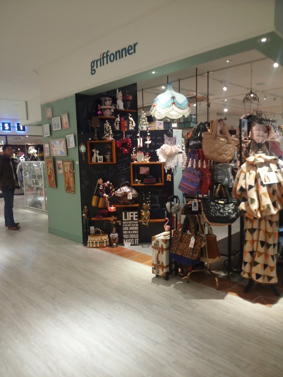 ヨーロピアン雑貨ショップのグリフォネです。オリジナルアクセサリーと、ヨーロッパを中心に集めたインポートもののインテリア雑貨が沢山置いてあります。ショップ内には、ファッション小物やインポート商品などが揃っていました。