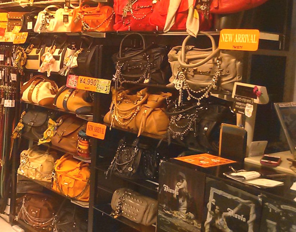 T W I S T Y は、煌めくハードなクールさに弾けるポップな遊び心がツイストしたファッション雑貨トータルブランドなんだそうです。ショップ内には、色とりどりのバックやベルトなどの雑貨が所狭しと並んでいました。