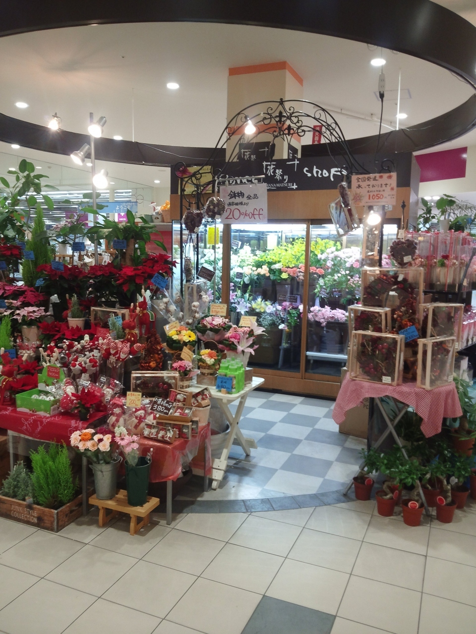 フラワーショップの花祭りです。ショップ内には、鉢物が20パーセントオフに成っていました。色とりどりの花が大変綺麗です。家にお花を飾れば、ハッピーになるかもしれません。全国発送もやっていますのでフラワーギフトもできます。