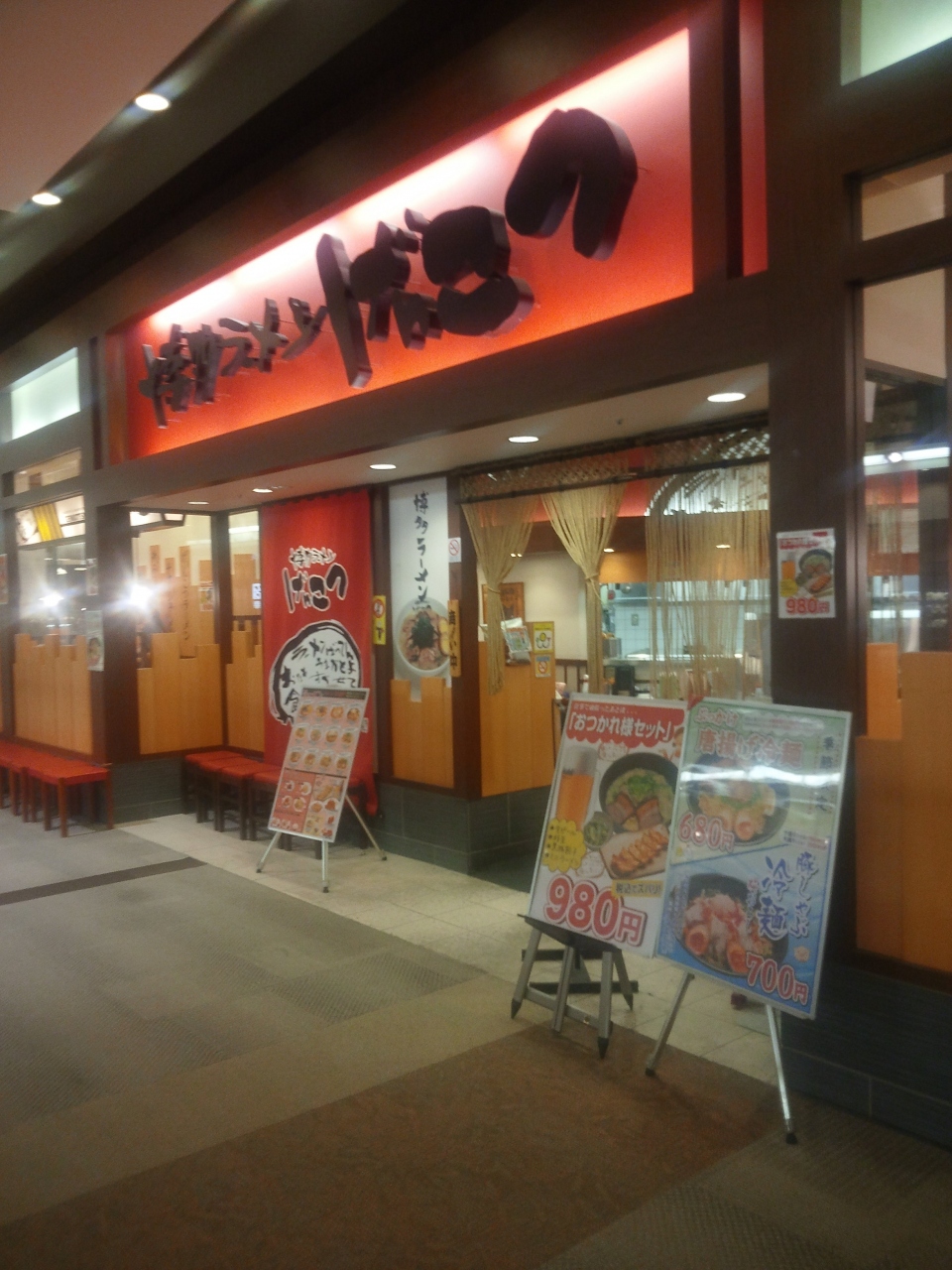 博多ラーメンげんこつでは、ラーメンと色んなセットが揃っていました。おつかれセットはビールとラーメンとギョウザのセットで980円、冷麺もやっていて唐揚げ冷麺って余り聞かない物や、藤じゃぶレーメンもありました。