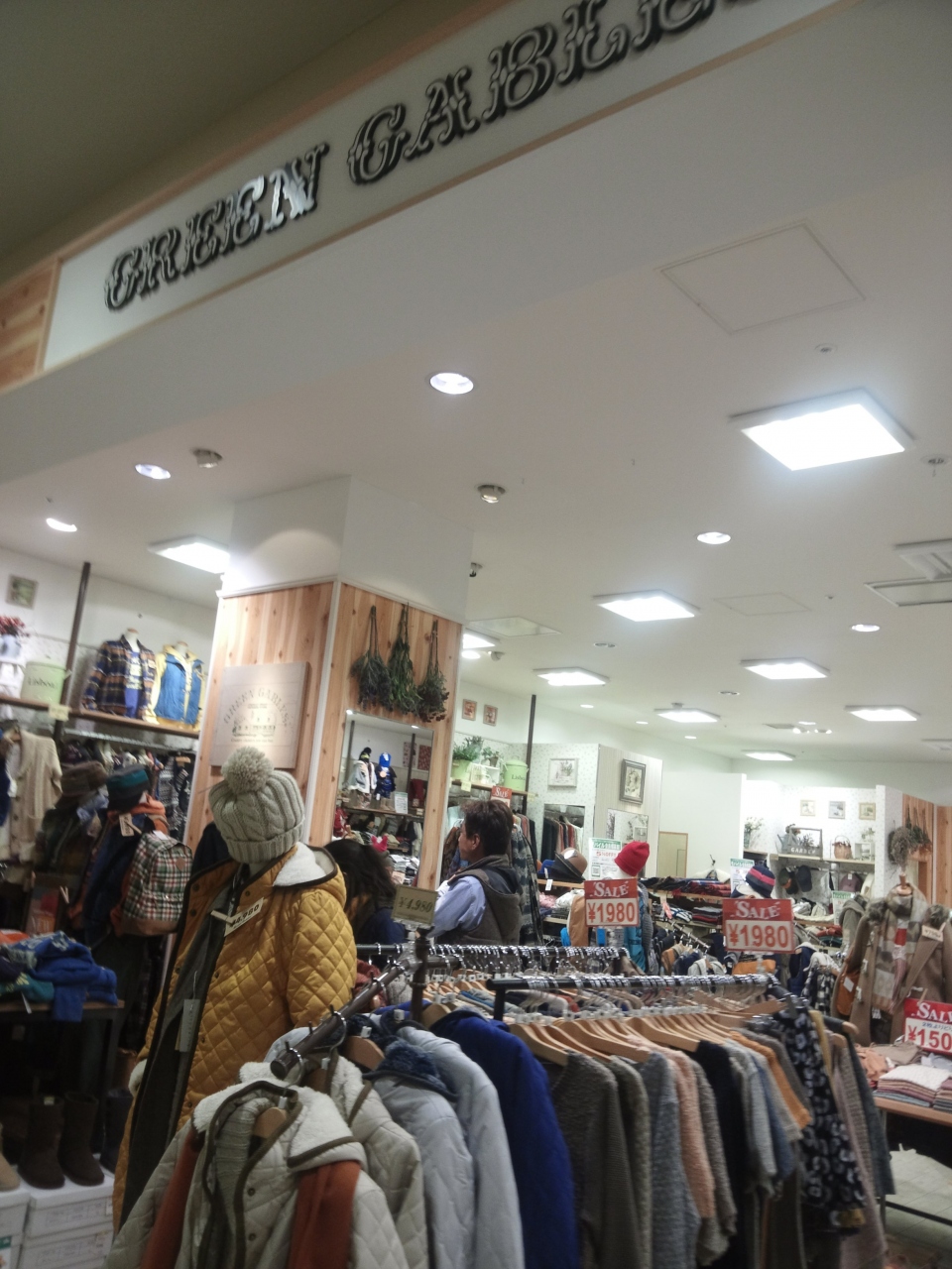 リラックスカジュアルのグリーンゲイブルズです。セール中でも合ったので意外とお手軽価格に成っていました。秋物から冬物までぎっしりと並んでいました。懐かしさと安心の中に素材のもつ暖かさ温もり、風合いを生かした誰からもあいされるリラックスカジュアルが中心なんだそうです。