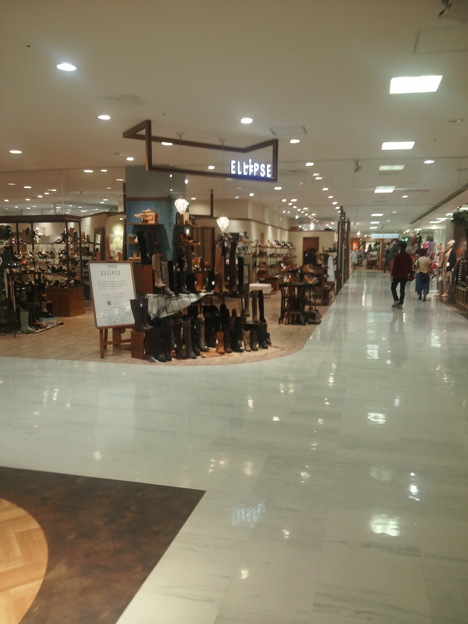 エリプスにはレディースシューズショップでブーツが沢山置かれていました。ショップの前面は、秋って感じで、特にロングブーツがメインの感じでした。靴のサイズは、22.0センチから25.5センチまでそろっているそうです。