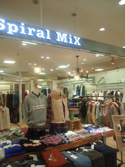 女の子の「今ほしい」を時代に合わせ形にします。こだわりある普通感覚をベースに可愛さとトレンドをMIXさせ、カジュアル・ガーリーなスタイルをご提案するSpiral Mix です。ショップ内は気軽に着れる服が揃っていました。