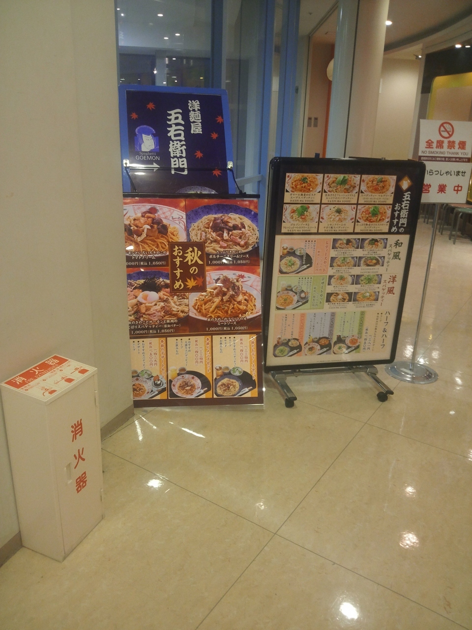お箸で食べるスパケッディー専門店の洋麺屋五右衛門です。店名の由来となった五右衛門釜(大釜) で麺をゆったりと茹であげることから名づけたそうです。和風・洋風のオリジナルメニューは30種類以上。スパゲッティーかあります。