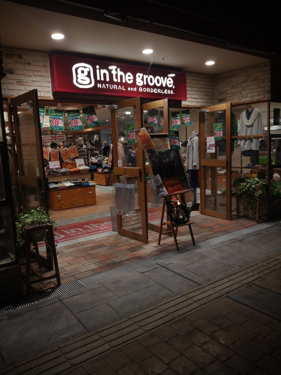 インザグルーヴ(in the groove)とは、皆が絶好調になれますように…とのこだそうです。丁度、ショップ内は、20パーセント引きのセールをやってました。服は、着こなしがしやすそうなベーシック系が基調でした。