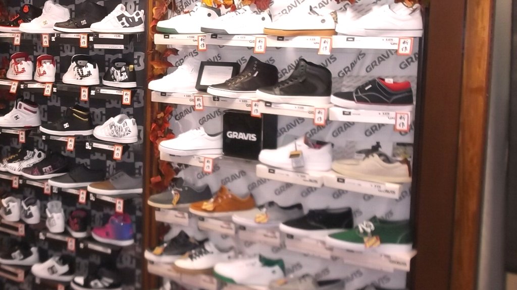 サーフィン・ボディーボード・スノーボード・スケートボード・BMXなど アクションスポーツのスポーツ用品が豊富なスポーツショップがムラサキスポーツです。ショップ内はは、スポーツシューズが以外に沢山揃っていました。ちょっと大きめの服も揃っています。
