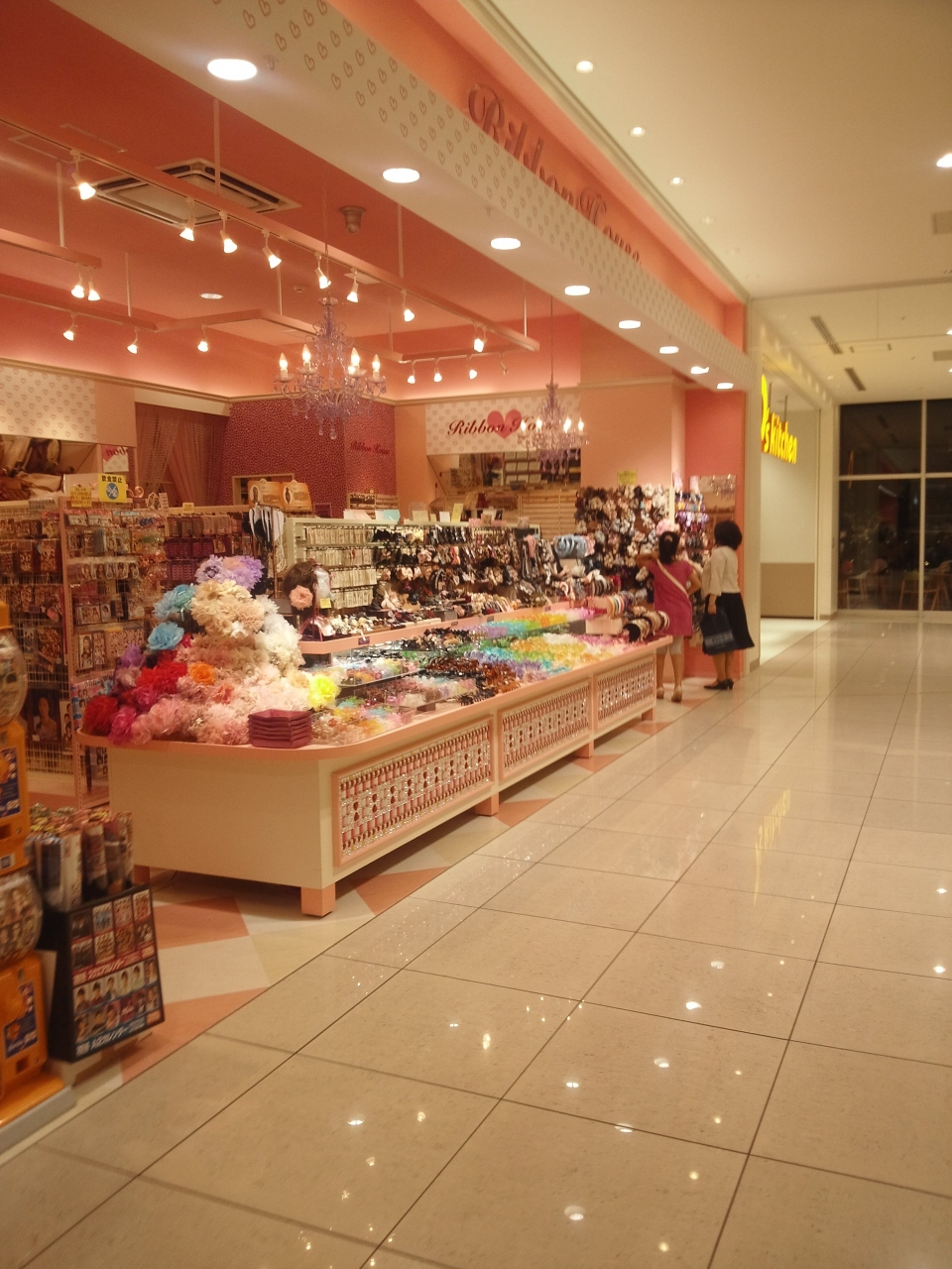 ショップ内がピンク色のRibbon Houseです。アクセサリー類が沢山置いていました。特に髪留めが凄い種類置いてありました。髪留め以外にも髪につけるシュシュみたいなものを置いてあります。女性必見の感じですね。