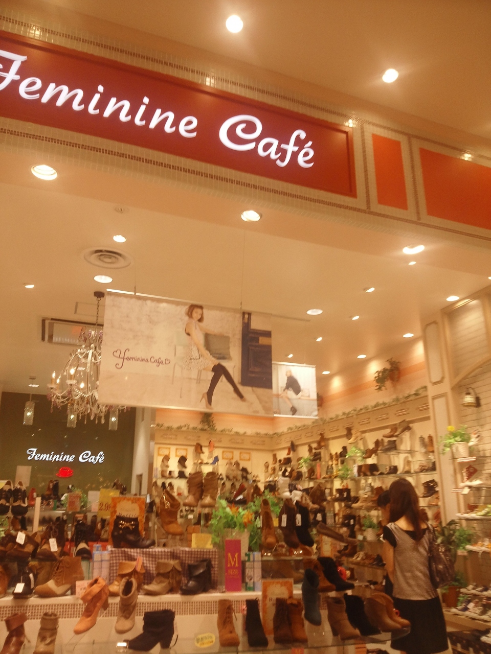 カフェをイメージした雑貨テイストのレディースシューズショップのフェミニンカフェです。ショップ内は小洒落た靴から、可愛い靴など沢山揃っていました。中々ここまで女性向けに揃っているショップは少ないので覗いて見てはいかがでしょうかね。