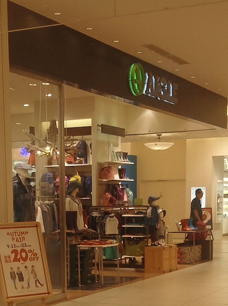 ライフスタイル・アウトドアブランドのエーグルです。丁度店内は、20パーセントオフセール中でした。ショップ内には、アウトドアに適した、ウェア、 アウタ、 シャツ、 インナー、ミドルレイヤー、 ボトムス、 ニットなど幅広く揃っていました。
