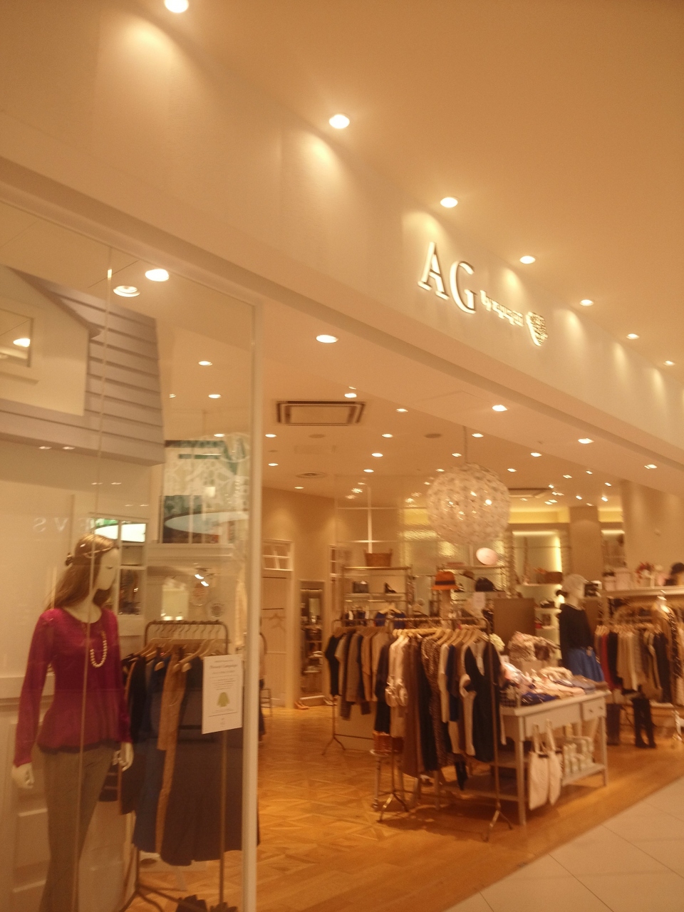 エージー バイアクアガールは、「ワールドのアクアガール」が 運営するセレクトショップです。ショップ内はすでに秋色一色と成っていました。大人びた女性の服が沢山揃っていました。服の他は、帽子やバックなどもありました。