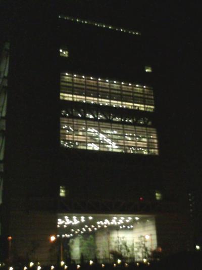 六甲ミーツ・アート 芸術散歩の開催地の一つである自然体感展望台 六甲枝垂れでは、六甲山光のアート 「Lightscape in Rokko」が開催されていました。1000万色以上の色彩表現ができる最新のLED照明を使っいるそうで、展望台全体を覆うフレームを内側から照らす光のイベントが大変綺麗でした。