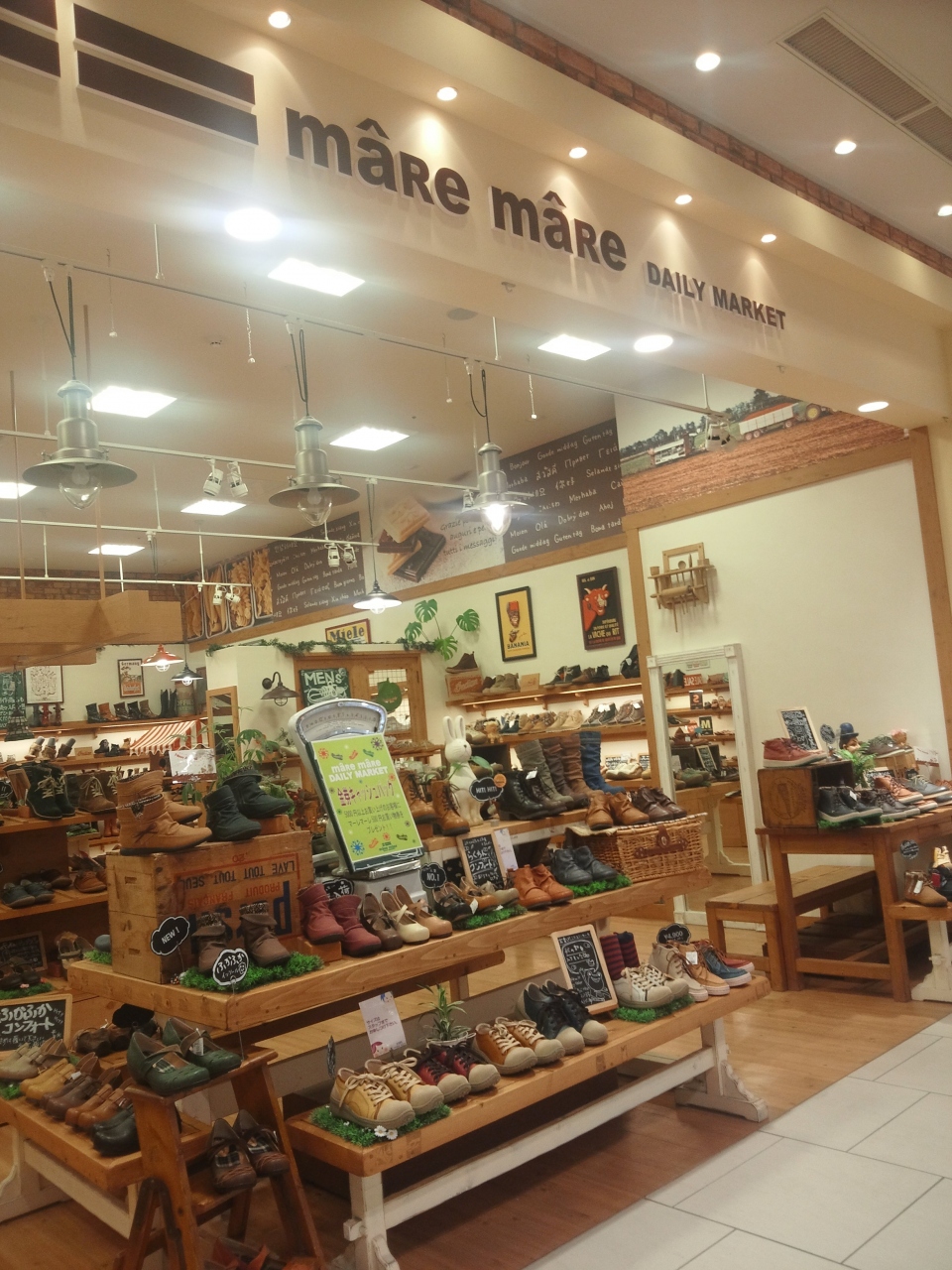 マーレマーレ デイリーマーケットは、大変おしゃれな靴が揃っていました。ちょっと他の靴の専門ショップは違いがあるって感じです。 ショップ内にはパンプス、 スニーカー、サンダル、ブーツなど小洒落た感じの靴がおしゃれな感じでした。