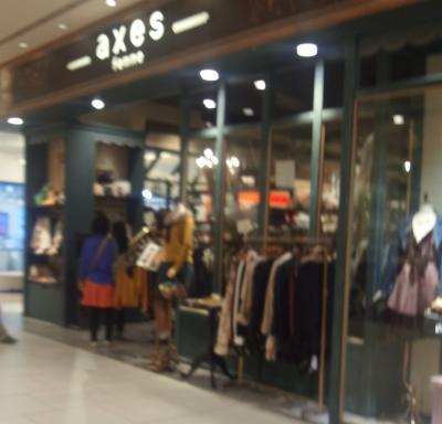 ノスタルジックをテーマのアクシーズファムです。ショップ内は洒落た感じの服と小洒落た感じの服が置いてあります。 アンティークな感じのショップです。ショップ内はすでに秋が漂う感じに成っていました。秋にふさわしい感じのショップです。