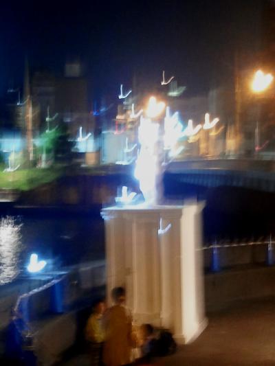 船津橋下に、2013大阪水都フェスに合わせて、臨時トイレが設置されました。トイレと言ってもタダのトイレではありません。トイレで水を流すと・・上にある巨大な小便小僧とのコラボが・・なんと小便の放水が始まるイベントに笑ってしまいました。
