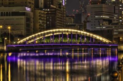 夜の堂島大橋は、ライトアップがされて大変綺麗です。後ろにある高層ビルとのコラボも大変いい感じです。全長は、76.15mで 幅 員が22.70m、 形 式がアーチ橋と成っています。周辺は中之島に走るランナーが以外に多くランに適した場所です。