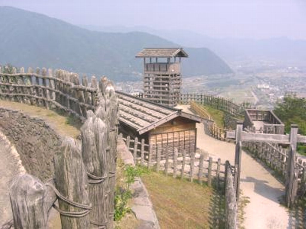 あの、NHK大河ドラマ「風林火山」での舞台になった城山史跡公園です。当時四の郭、三の郭、二の郭、本郭と登り、館や見張り台、兵舎、門、板塀、矢倉等などが復元されたそうです。山頂からは千曲川や温泉街、善光寺平が一望でき、城主気分で天下を見下ます。