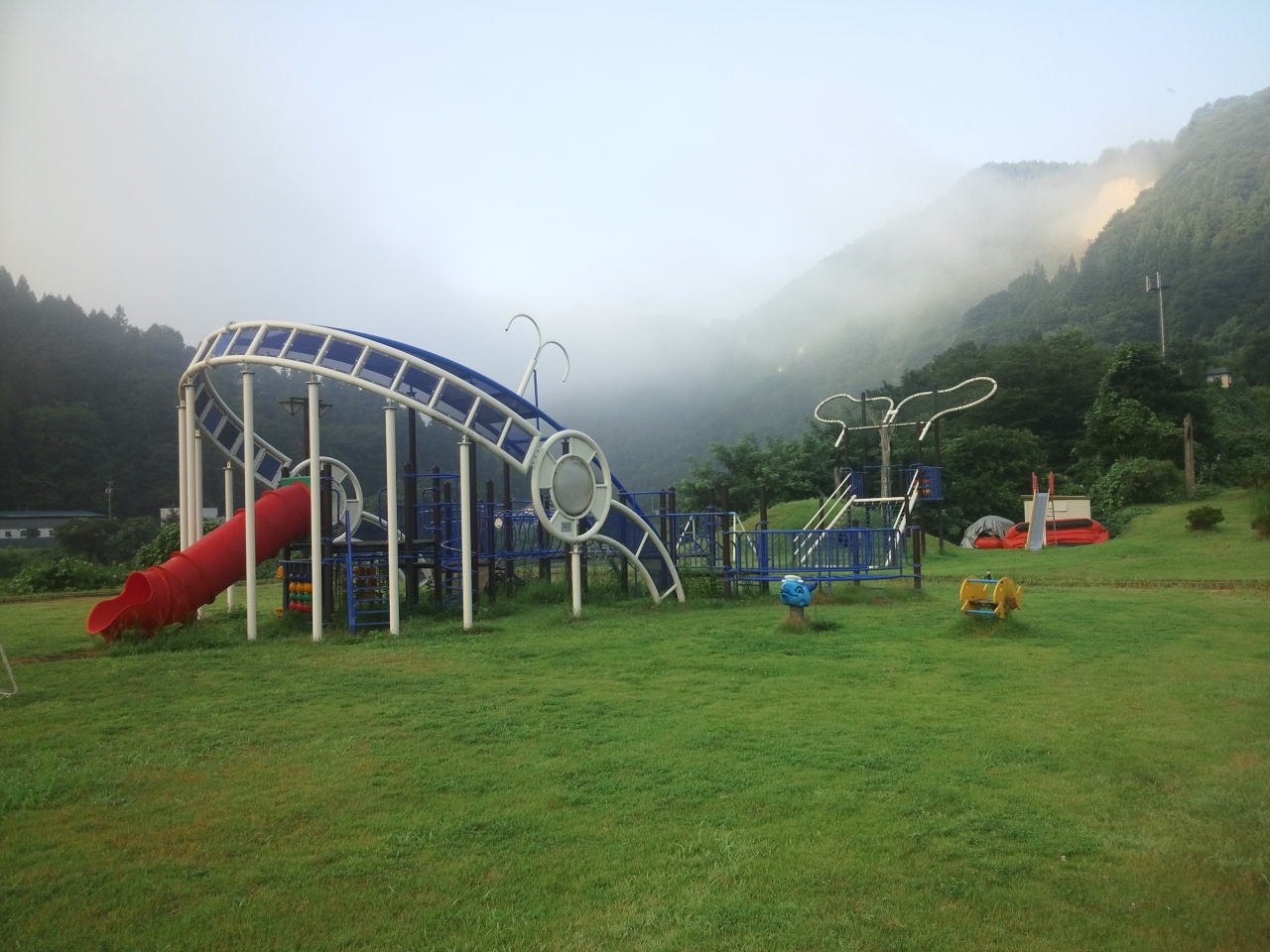 町内でくじらの化石が 発見されたことから「メカクジラ」と呼ばれ家族の 憩いの場、通称「 くじら公園」呼ばれているのが信州新町ふれあい公園です。 そのメカくじらは、すべり台、のぼり棒、27ホールのパタゴルフ場があります。