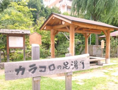 温泉街の中心にある「水と緑と潤いのある公園」足湯ありました。ヒノキを使用した大変いい感じの足湯です。温泉は硫黄の香りが良くします。やはり戸倉温泉は温泉の質が大変良いのでいい感じになります。ぜひ散歩がてらに行ってみて下さい。