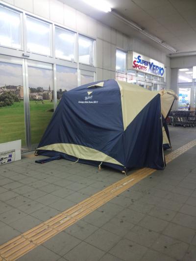 さすが、夏の季節です。スーパーゼビオも夏仕様に成ってました。大型のテントが展示されていました。ショップ内には、キャンプ用品やバーベキュー用品を始めスポーツ関係の物が沢山展示されていました。一部の夏向けの商品は、値引き対象に成ってました。