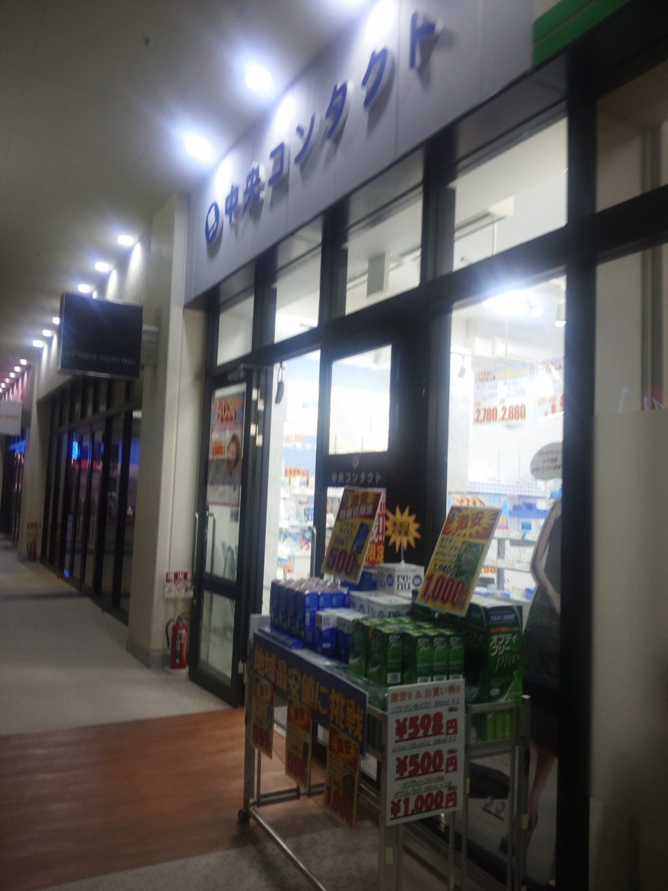 コンタクトの専門店の中央コンタクトです。激安と書かれているが値段は同様なショップと同等程度でした。特に安くもなく高くもなくって感じです。最近は1dayや1週間使えるコンタクが主力でカラーコンタクトもありました。
