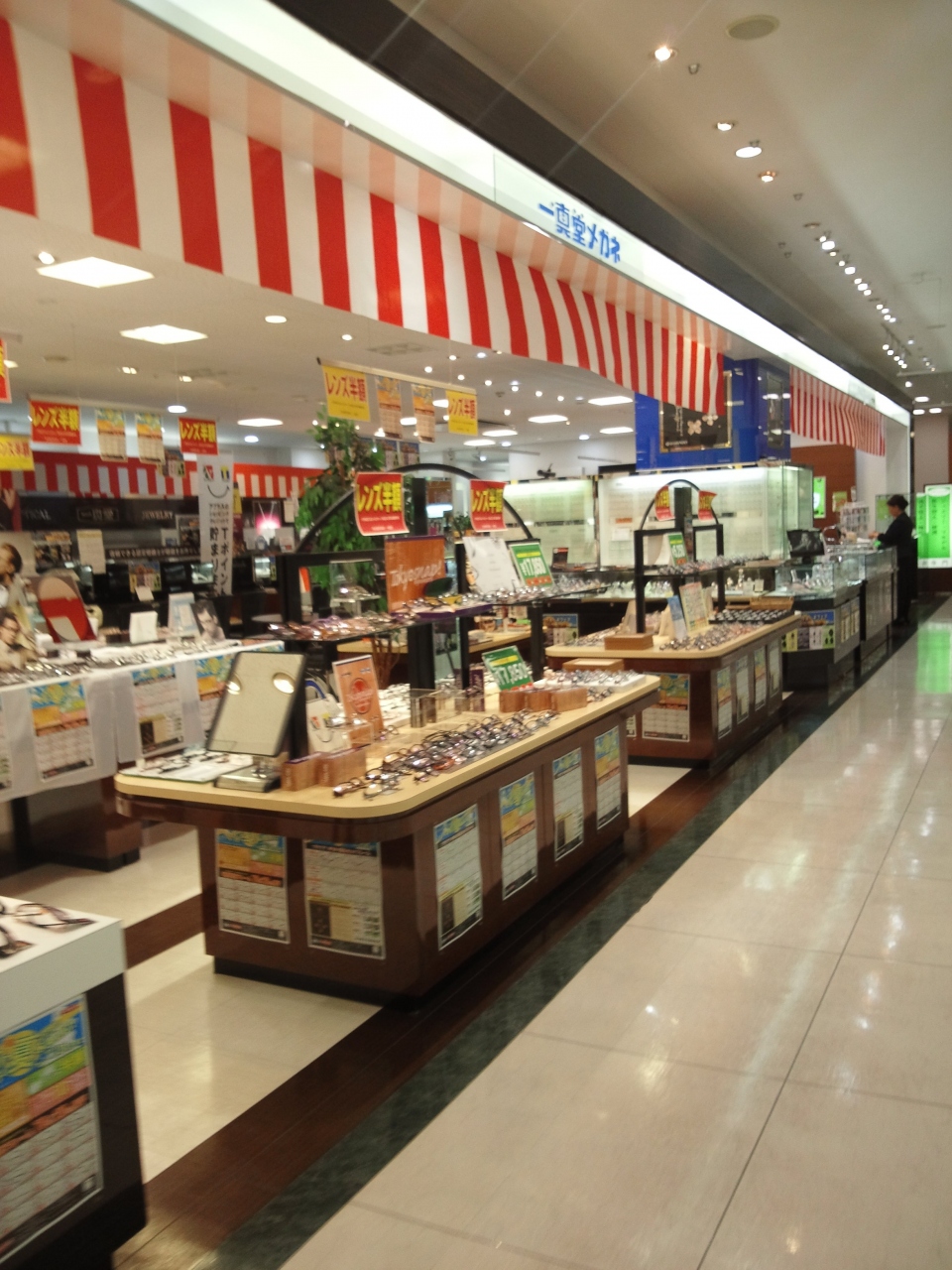 ジュエリーもやっている一真堂は別にメガネもやってました。店内はセール期間中なのかメガネレンズの半額セールをやってました。レンズ込みの均一価格のメガネセットもあります。以外にフレームは豊富に揃っていました。