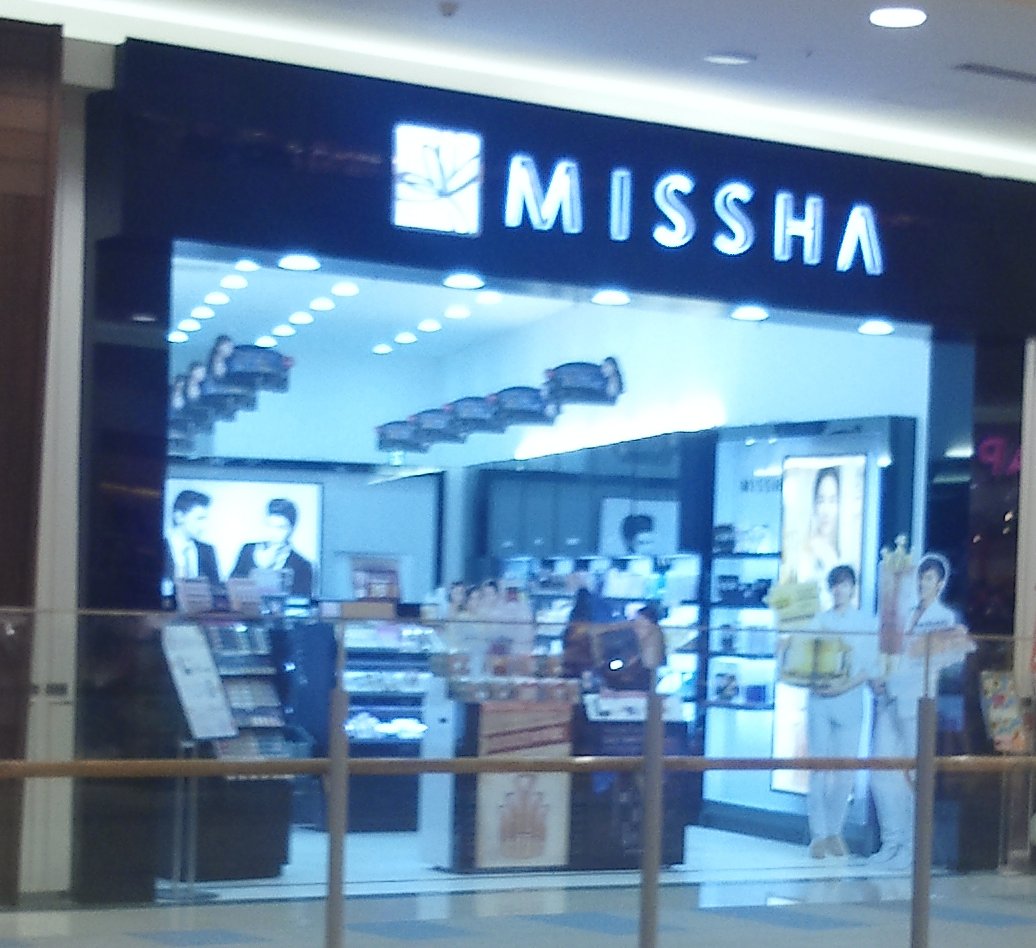韓国コスメショップのミシャです。韓国産の化粧品が売られています。以外にお手頃価格で韓国で人気のコスメブランドなんだそうです。BBクリームのほかにも、漢方やカタツムリ由来成分を配合したスキンケアやカラフルなポイントメイクなどがあります。