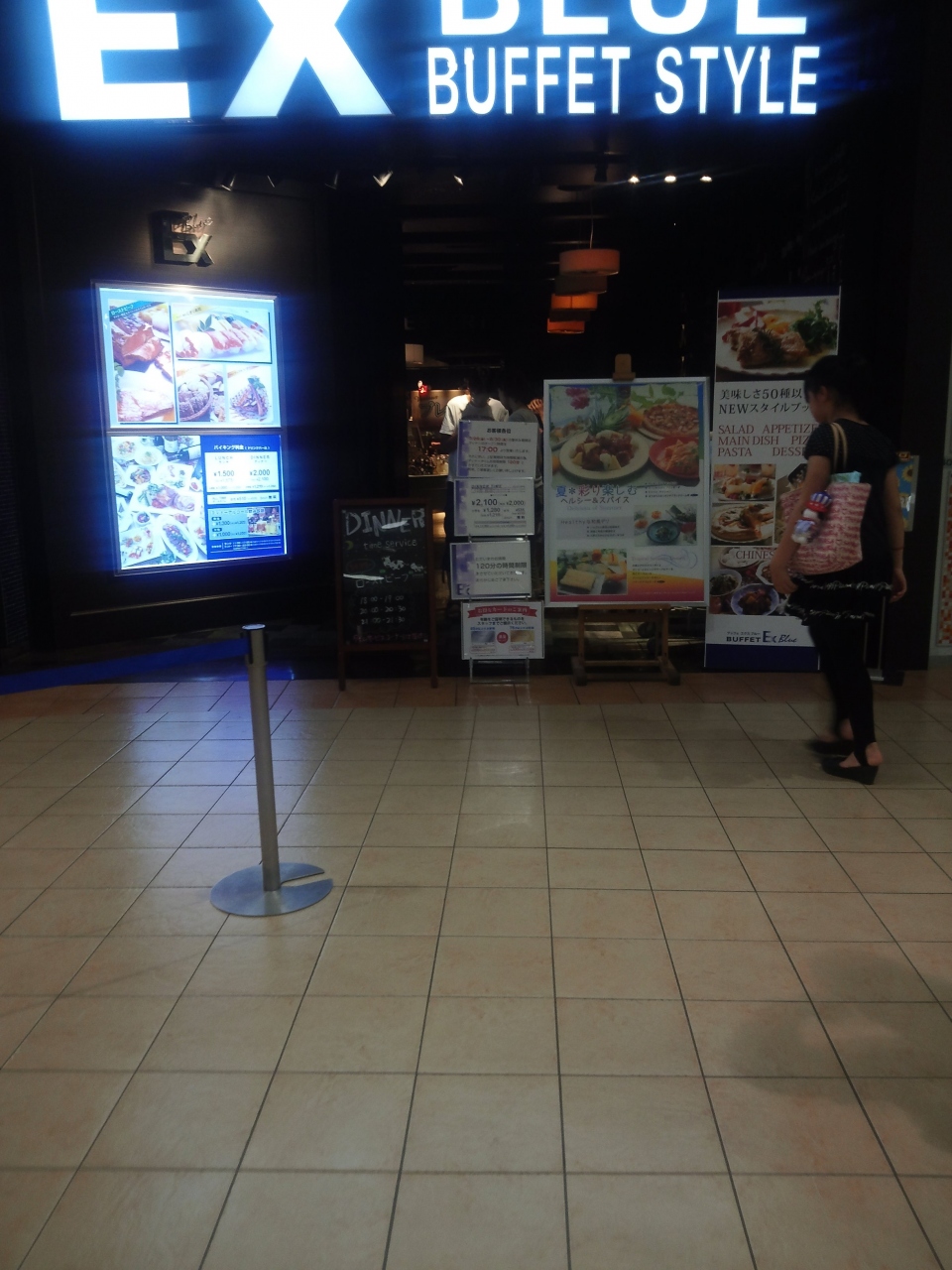 オープンキッチンバイキングのブッフェ エクスブルーです。コンチネンタル、中華、イタリアン、健康バランスを考えた和食や寿司など7つのコーナーに並ぶ料理は80種類以上です。料金は