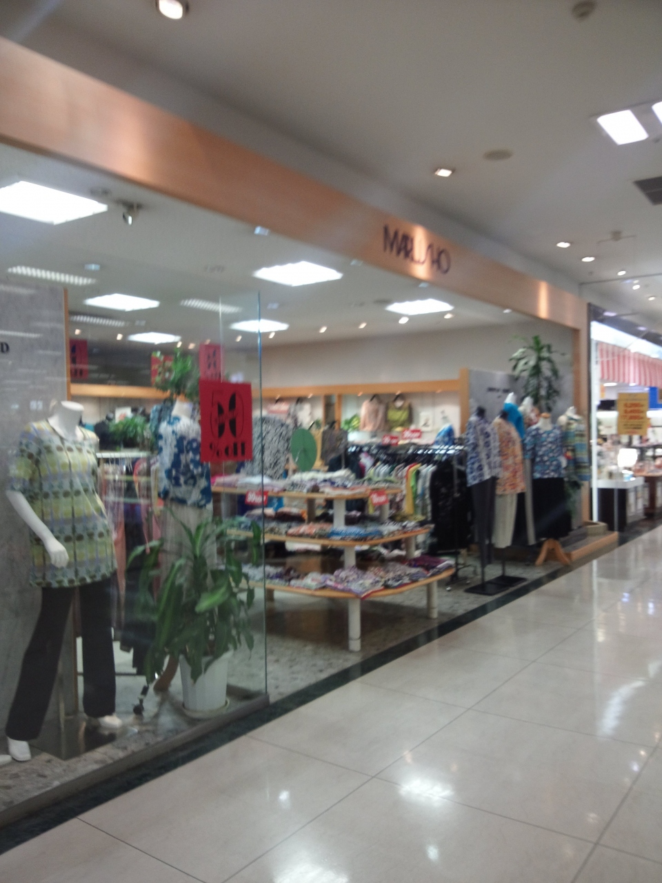 年配向けのファッション店って感じのMARUSHOです。丁度セール中で割引がされている商品が多かったです。店内には、個性的な服で年配者が好きそうな服が沢山置いてありました。年配者は覗いてみると良いかもしれません。