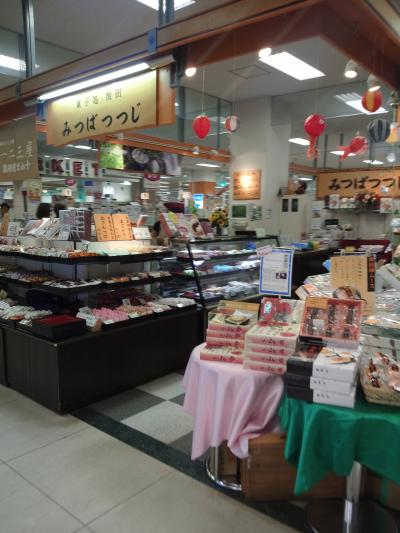 みつばつつじは紅紫色の美しい花を咲かせるお花です。その名前を頂いたみつばつつじです。店内には、地元を代表するお菓子屋さんの逸品や季節商品が揃いっていました。凄い沢山の種類のお菓子がドーンと並んでいました。