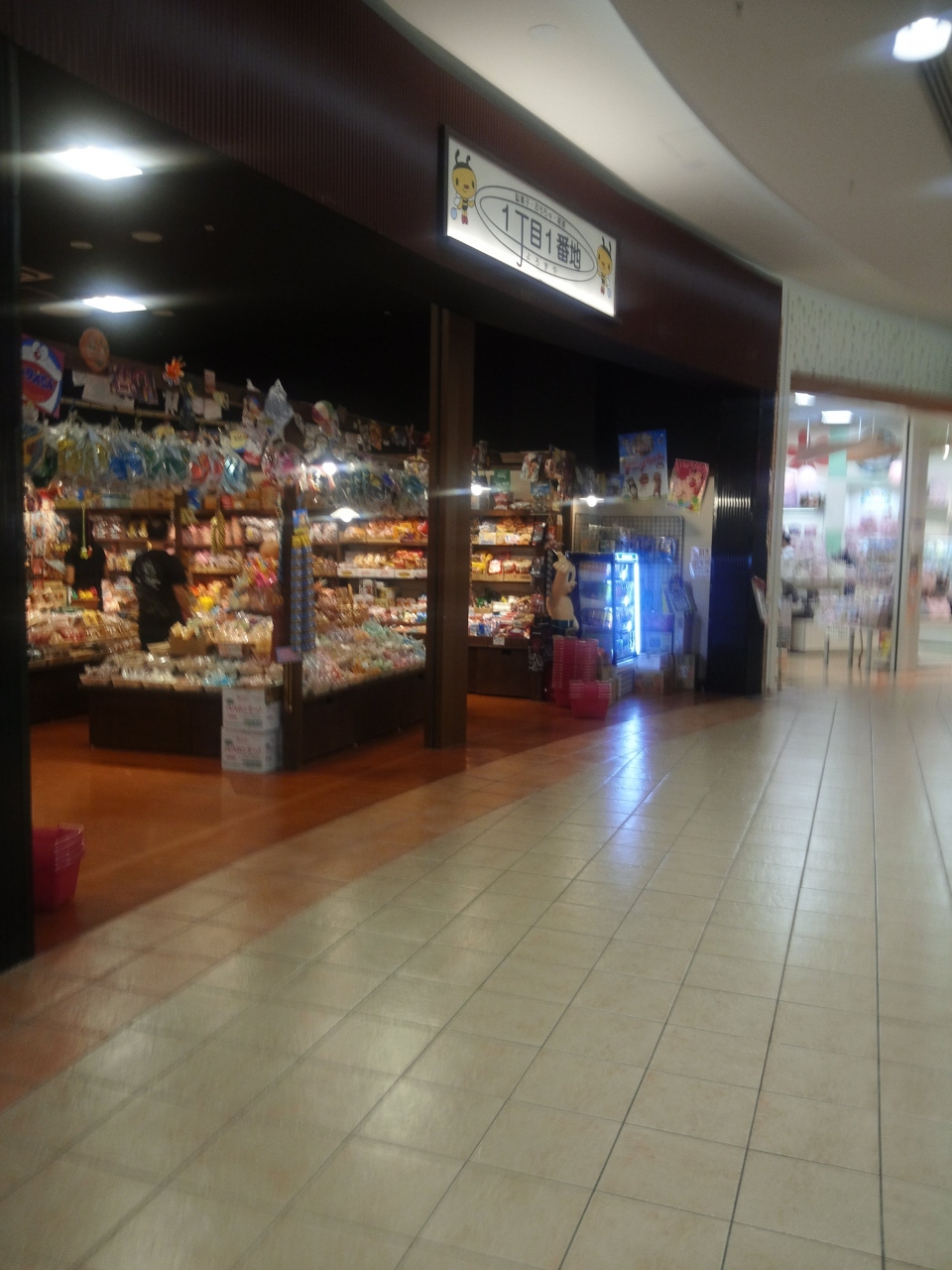 1丁目1番地には子供が喜ぶ駄菓子や玩具が沢山置いてあります。なんと昭和30年代の駄菓子屋をイメージした、懐かしい空間を演出しているそうです。店内には、懐かしの駄菓子・玩具からアイドルやキャラクターのグッズなどが売ってます。基本定価販売なので・・・買い過ぎには注意しましょう。