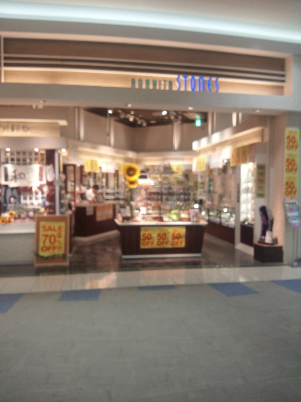 パワーストーンショップがアナヒータストーンズです。店内には、ストーンが沢山置いてあります。ちょーどセール期間中で50パーセントオフ、最大70パーセントオフって・・・通常の値段ってまるでボッタクる価格に思えるのだが・・・