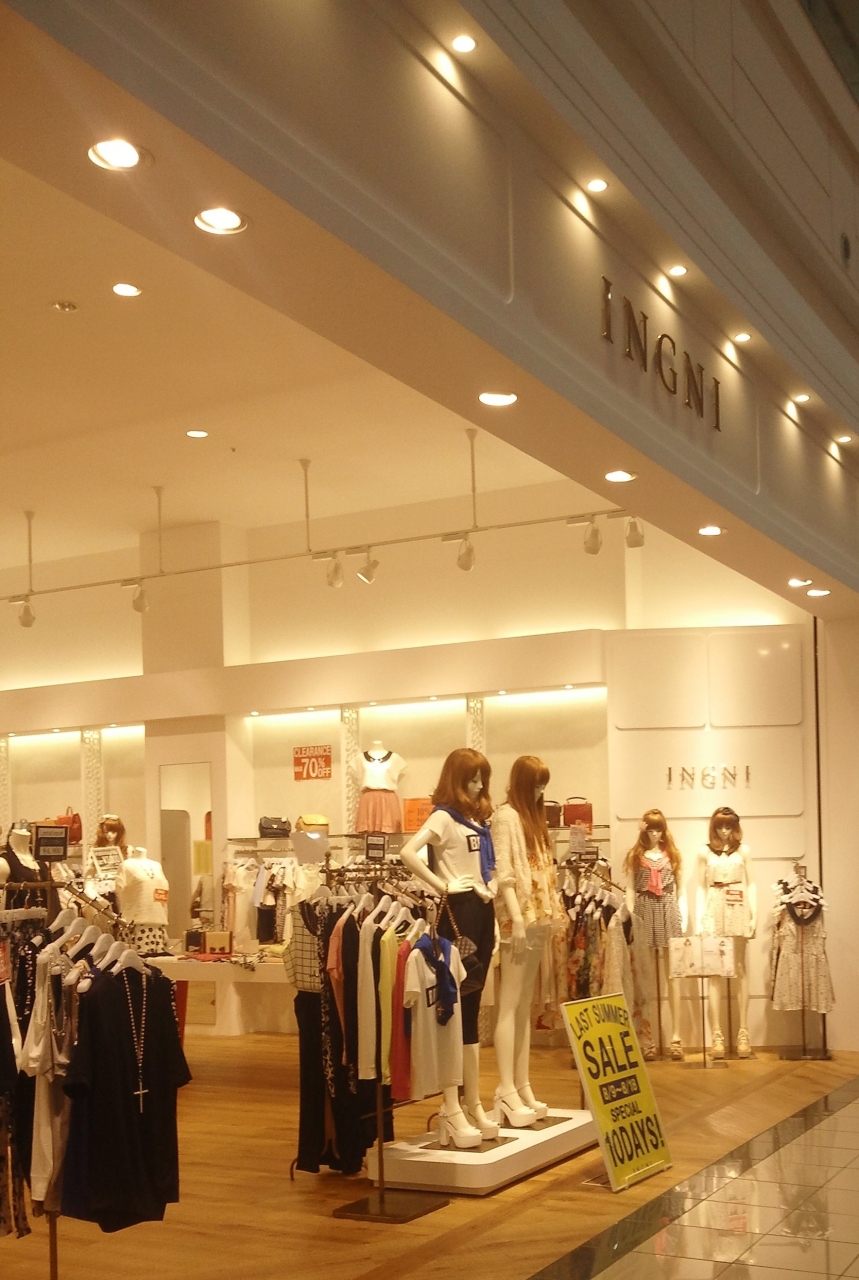 コンセプトは、「毎日をHAPPYに・・・」をテーマにSWEETなお気に入りの1枚を全ての女の子に向けて贈くるのがイングです。店内は、夏のラストセール期間中でした。最大70パーセントオフなのに店内は閑散としてました。