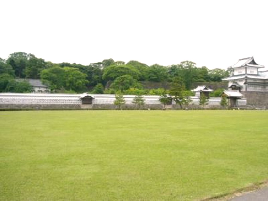 金沢城の二の丸広場も大変広大で、江戸後期の城郭の地割りを基に、史実を尊重して整備された広場です。広場からは菱櫓など歴史的建造物が復元されてた建物が見事に絢爛豪華です。最近復元された用には見えないのが不思議です。さすが加賀100万石ってかんじです。