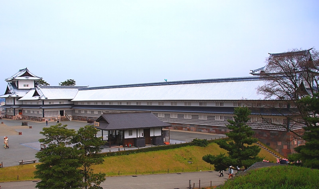 金沢城はかなりの部分が復元された建物ですが、切手門は城址内に再移築して現存している門で金沢城の見どころの一つです。大変小さい門ですが切手門の 内側は数奇屋敷跡です。奥の洋館は旧第六旅団司令部なのでそれも合わせてみたい。