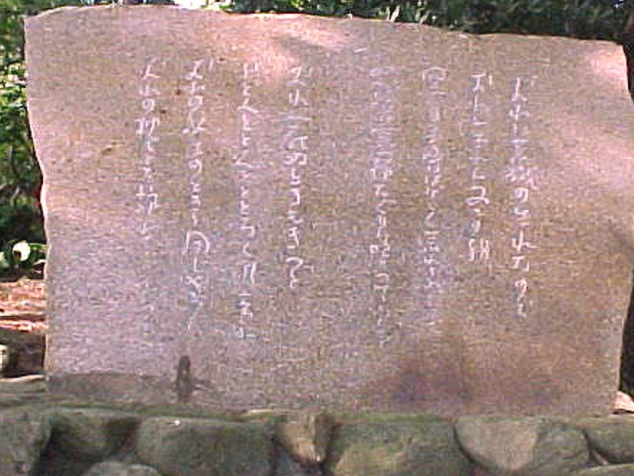 句碑「愛子」こと森田愛子は、三国の豪商三田三朗右ヱ門と町の名妓との間に生まれました。 若くして胸をやみ昭和15年鎌倉で療養中、高浜虚子の門弟伊藤柏翠と知り合い俳句の道にはいったそうです。 虚子は愛弟子愛子をしのび、愛子は病床にある自分の心をよみ、柏翆も愛する亡き愛子をしのんでの一句が、ここに並べて建てられたそうです。