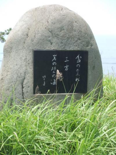 三好達治は、わが心のふるさとと言い切るほど三国を愛した漂泊の詩人なんだそうです。荒磯遊歩道には、三好達治の詩が刻まれた石碑があります。その他にも荒磯遊歩道の道沿いには、彼の文学碑「荒天薄暮」が設けられている。