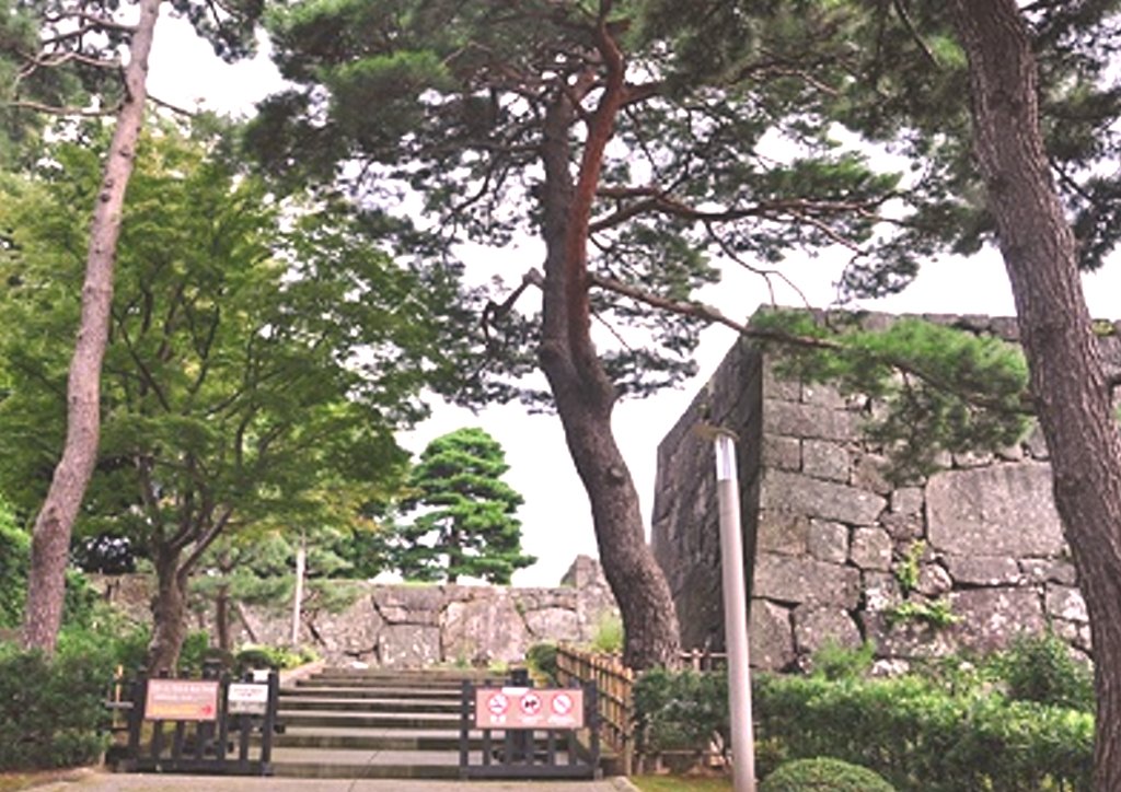 見るからに石垣が巨大で圧巻な場所です。ここに当時は門が合った場所なのだそうです。大手門は尾山城の時代、西丁口にあったそうですが天正年間に前田利家の居城となると高山右近によって大改修され、尾坂口に移したと伝えられています。名称は尾坂門ながら事実上の大手門なったそうです。