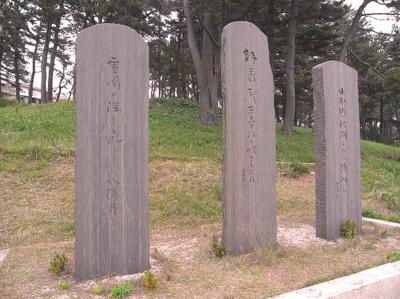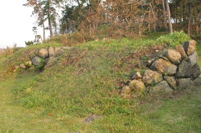 丸岡藩砲台跡は、江戸時代末期の1852年に、丸岡藩が沿岸警備のために築いたという砲台だそうです。海に突き出た海岸線上に、弓状に築かれた高さ1.8mの土塁に5つの砲眼が4.5m間隔で設けられている。原形をこれだけしっかり留めた砲台跡は全国でも珍しく貴重なので国指定史跡になっているそうです。まあ、見応と言え特に無く、それよりも海岸が綺麗なので海岸に目が行ってしまいます。