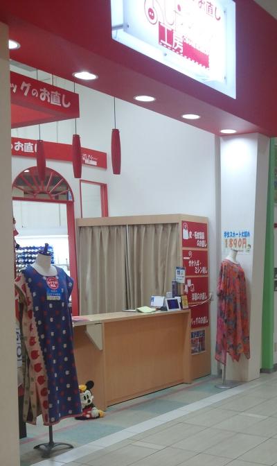 おしゃれ工房は、修理が専門の店屋です。洋服とバッグのお直しをやっています。簡単な内容の物は、お買い物をする前に出しておけば帰るときには完了しているので手間が掛りません。パンツ丈つめ程度ならお買物やお食事の間に仕上あがります。サイズ直しや、ちょっとしたデザイン変更も可能だそうです。