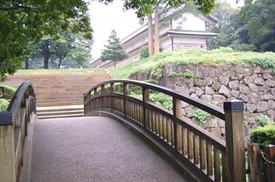 極楽橋は、二の丸と本丸の間にある空堀に架かる橋です。極楽橋の名前の由来はは、金沢城が金沢御堂であった時代から使われていたと伝えられていて、その昔金沢御堂に参詣する人々が朝は念仏を唱えながらこの橋を渡り、夕方には日本海に沈む夕日を拝んで極楽往生を願って帰ったと云われてる所から名前がついたそうです。あれ念仏唱え無いで渡るとどうなの?