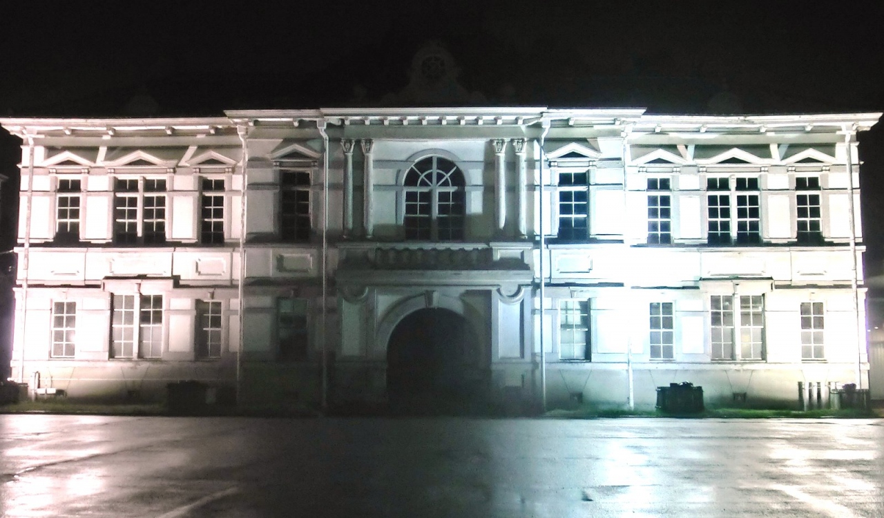 旧陸軍金沢偕行社は木造瓦葺き2階建ての建物で、明治31年(1898)大手町に建築され、明治42年(1909)現在地に移築されたものだそうです。建物はマンサード屋根やドーマー・ウインドウ、コリント式のピラスターなど、ややバロック風のデザインで高度の洋風様式技巧を示していて大変優雅な建物です。見るならな夜です幻想的でロマンチックな姿を楽しみことができます。