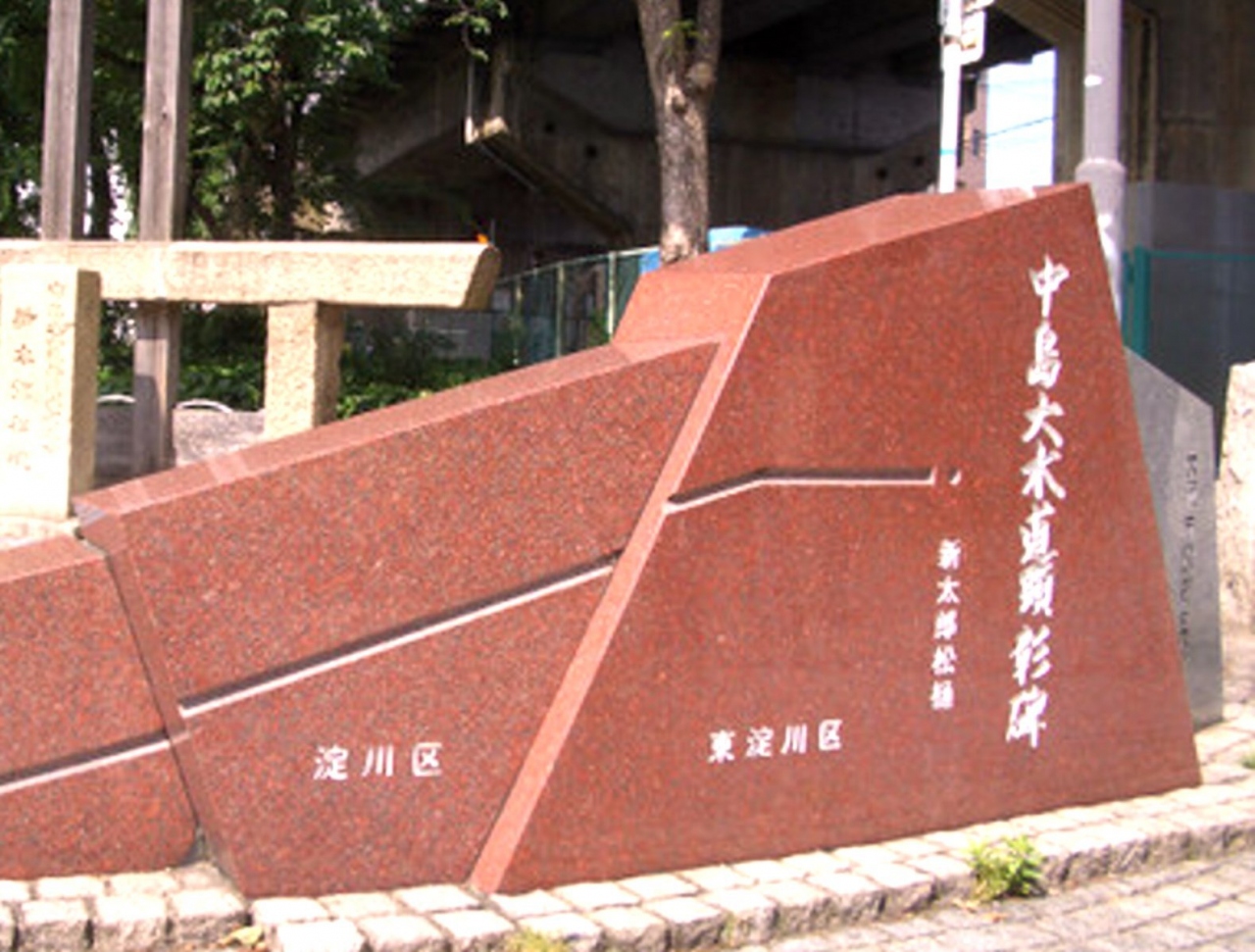 江戸時代に作られて大阪湾に直結した大水路現在は、東淀川区から淀川区を抜け西淀川区に至り、大阪湾に直結した大水路は埋め立てられてしまいましたが、西淡路5丁目の新幹線の高架のそばに「新太郎松樋」の石柱と「中島大水道顕彰碑」が建てられています。