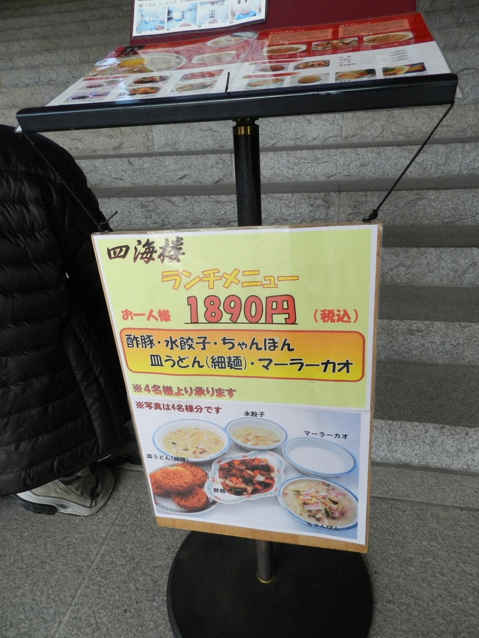 一般客席(アラカルトでオーダーできる席)は満席でした。諦めかけていたら、4名以上のランチセットメニューなら入ることができたので、4人連れだったし、ここまで来たらやっぱり『四海樓』のちゃんぽんを食べたいから入店しました。