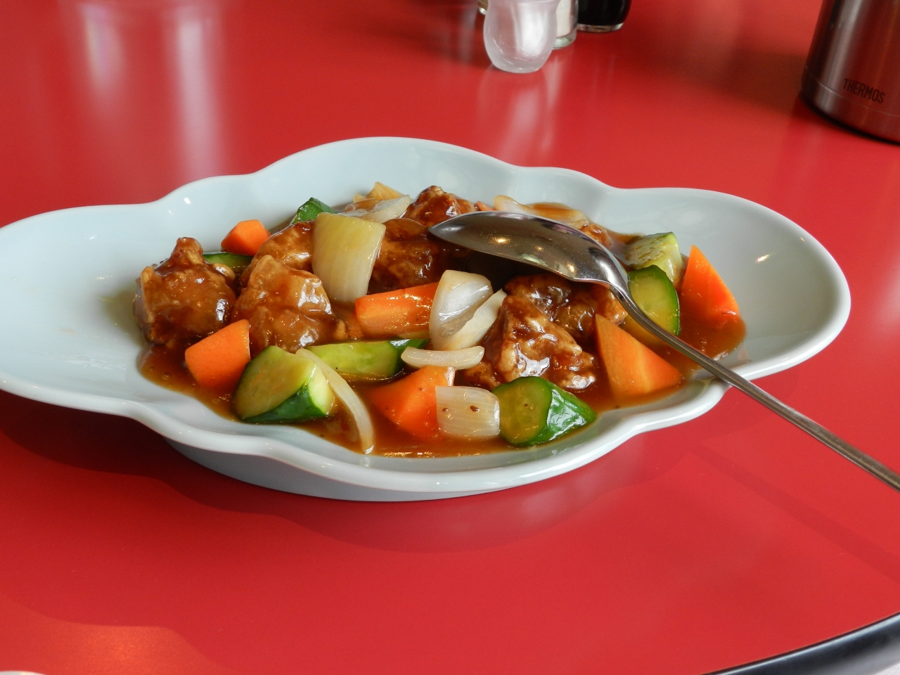 ランチセットには、水餃子・酢豚・皿うどん・ちゃんぽん・デザートが付いていたのでコスパ的には問題ありませんが、少食の人なら残してしまいそうな量でした。